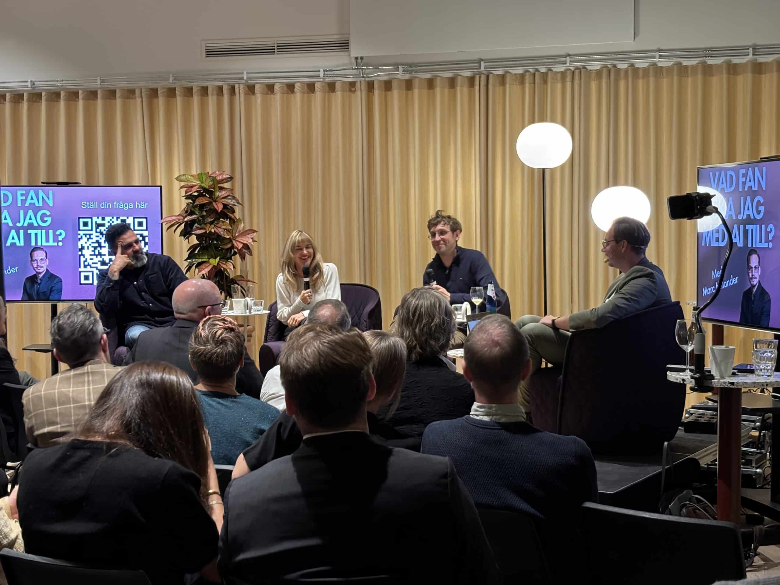 Vi fick dessutom ett smakprov av podden live under AI-dagen den 3 december som hölls på United Spaces Östra Hamngatan. Då fylldes baren av nyfikna lyssnare när Vad fan ska jag ha AI till? Spelades in på plats med Marc Hillander, Dácil Hernández, Oday Mashalla och Mats Iremark. Det blev en eftermiddag full av skratt, skarpa insikter och riktiga AI-frågor – precis så som vi gillar det.