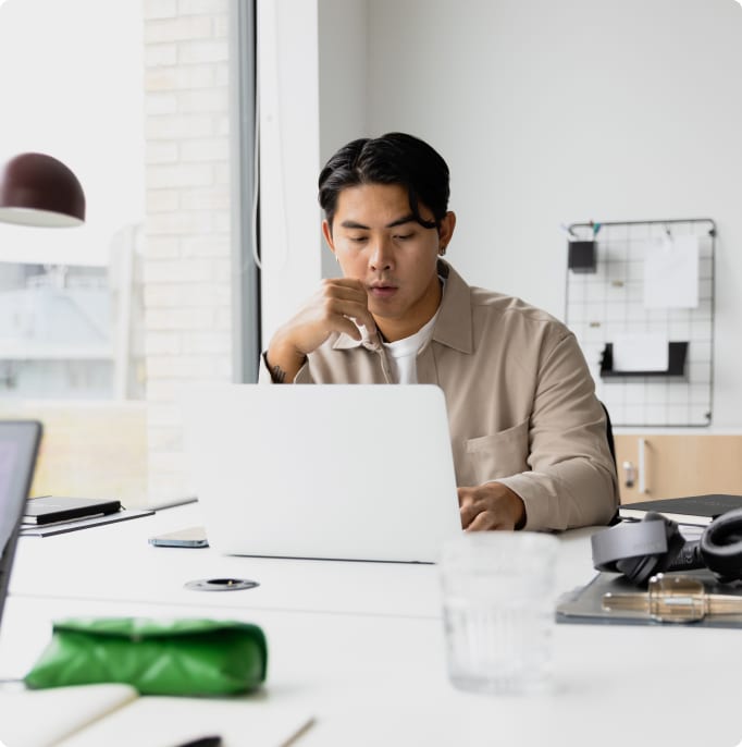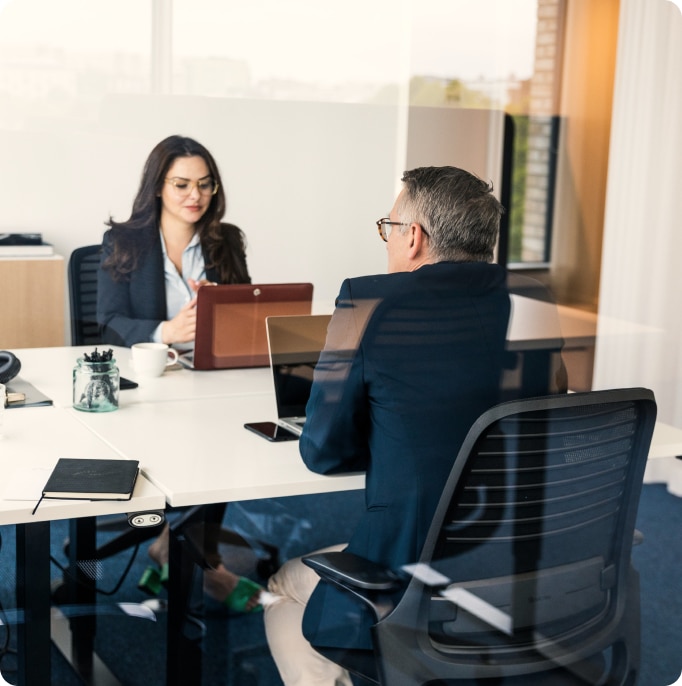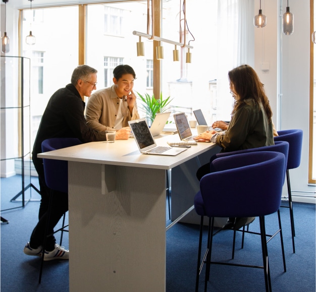 En dedikerad arbetsplats som är din egen. Komplett med höj- och sänkbart skrivbord och ergonomisk stol. Pynta med din ljusblåa musmatta eller bilder på nära och kära. Och kom och gå som du vill – vi står kvar. Eller ännu viktigare: Ditt skrivbord står kvar.
