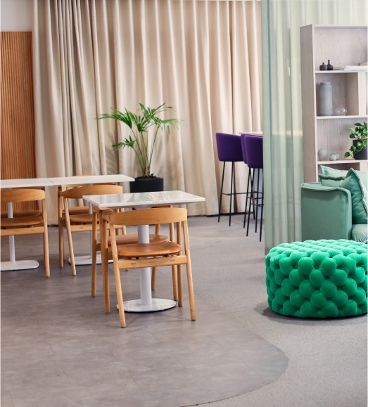 Lounge är det perfekta alternativet för dig som vill jobba i en avslappad miljö med härlig atmosfär. Läs mailen i en mysig soffa, ta mötet i ett telefonbås eller strukturera upp din vecka vid något av våra projektbord. Här jobbar du i öppna landskap, sida vid sida med andra drivna personer. Vem vet, du kanske hamnar bredvid din nästa samarbetspartner!