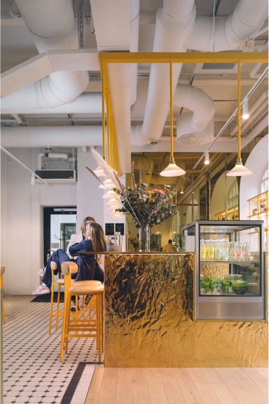 Här jobbar du i gamla Stockholm Vattens fastigheter, med en alldeles speciell blandning av historiskt och modernt. Ät din lunch hos oss i Guldbaren, och trilla förbi coola Gasverket när det vankas föreläsningar eller livepodd. På innergården kan du spela padel, köra ett pass i utegymmet eller lapa sol med en kopp kaffe.
