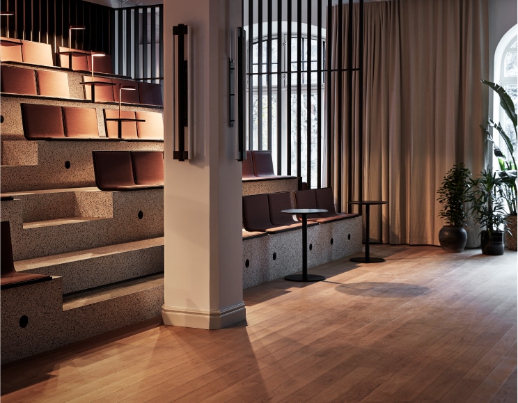 Vår lounge blir ditt kontor för dagen. Jobba från en av våra sköna soffor eller fäll upp laptopen vid ett arbetsbord. För möten finns smarta telefonbås.